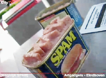 29 juni 2006talkshow'. "SPAM!" bij Artgadgets Officiële openings-talkshow van de tentoonstelling: [Mogelijk SPAM]. bij Voor de bekende SPAM-Talkshow zijn in de afgelopen jaren door Eindhovense designers, grafici en kunstenaars bijzondere en vaak geestige kunstvoorwerpen gemaakt. Allemaal geïnspireerd op het SPAM-blikje. Deze creaties worden onder meer tentoongesteld en te koop aangeboden tijdens de tentoonstelling [Mogelijk SPAM] bij Artgadgets. Er was muziek door Serendipity Labs en SPAM-presentator Rob Frank zorgde voor een live-talkshow tijdens de opening. Afterparty: was bij Grand Cafe Berlage op de Kleine Berg. ![]() ![]() info www.skke.nl |